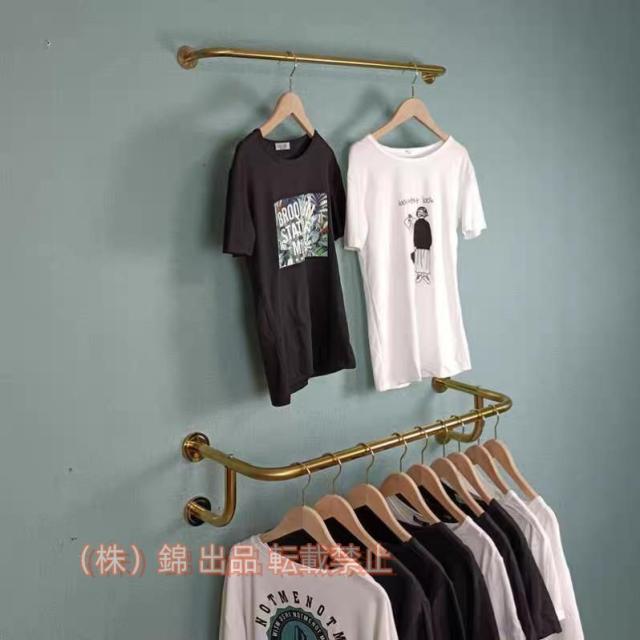洋服レール壁掛けハンガー4ベース株式会社錦金属製洋服ラック120cm洋服ディスプレイ用ガーメントラック収納ブライトゴールデンペイント(Color:GoldSize:120x30