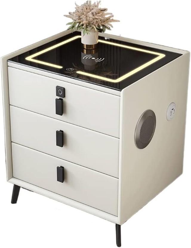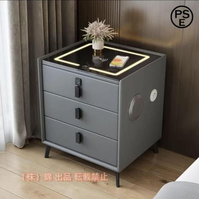 ナイトスタンド 現代のミニマリストのベッドサイドテーブル多機能の3層引き出しベッドサイドテーブルガラスカウンタートップランプサイドキャビネット ベッドサ