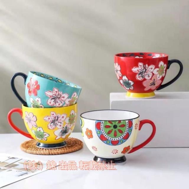 マグカップ北欧おしゃれコーヒーカップ大きい陶器ハンドメイド朝食カップ大容量コップカフェマグキッチン雑貨錦洋食器食器磁器400ml選べる15種類
