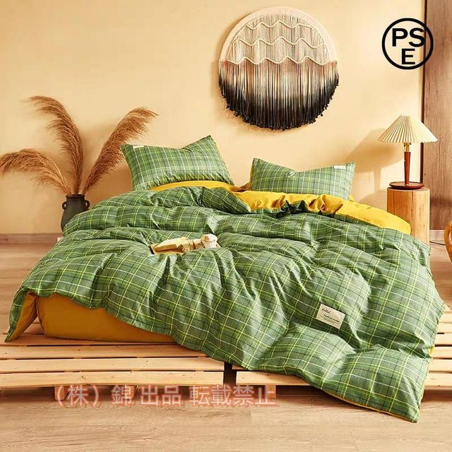 布団カバーベッドカバー4点セット寝具格緑チェック柄ボックスシーツ洋式おしゃれ春夏綿コットンシングル株式会社錦セミダブルダブル洗濯機洗える