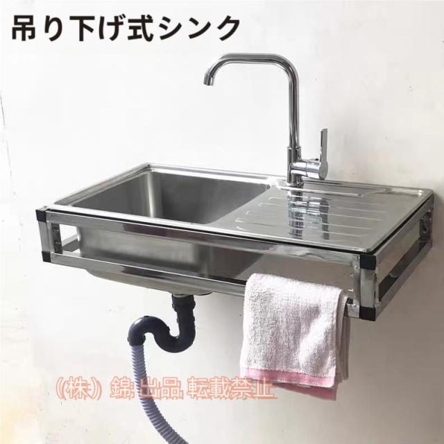 壁掛け式キッチン流し台 キッチンシンク 簡易省スペースガーデンシンク 株式会社錦大容量ステンレス製流し台 補強ブラケット付き キッチン/屋外/庭先使用 B