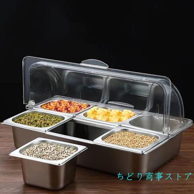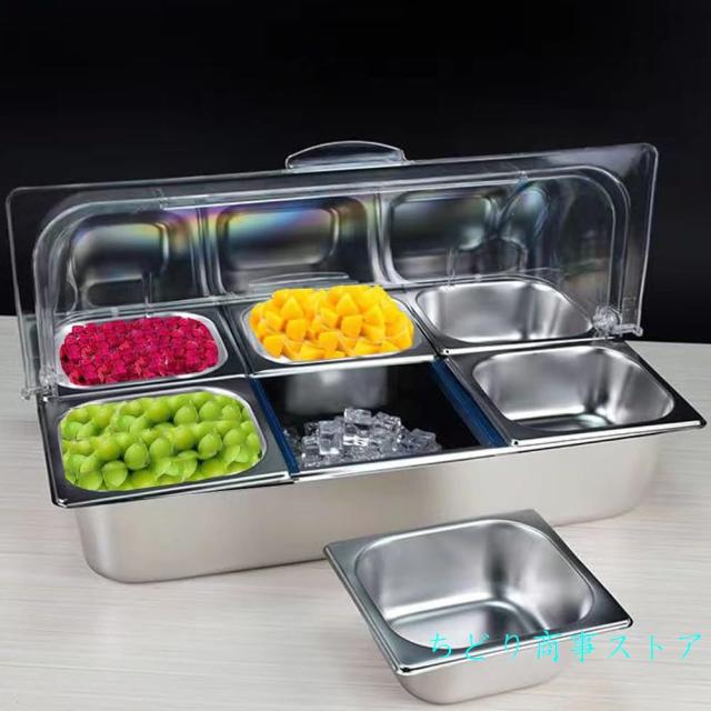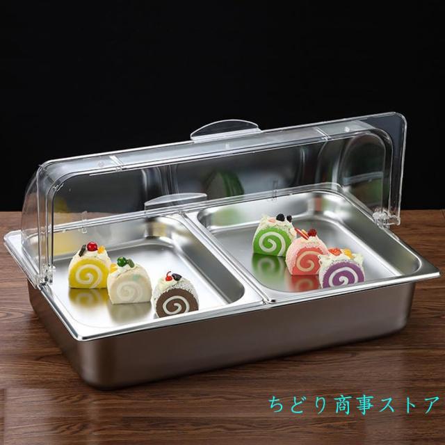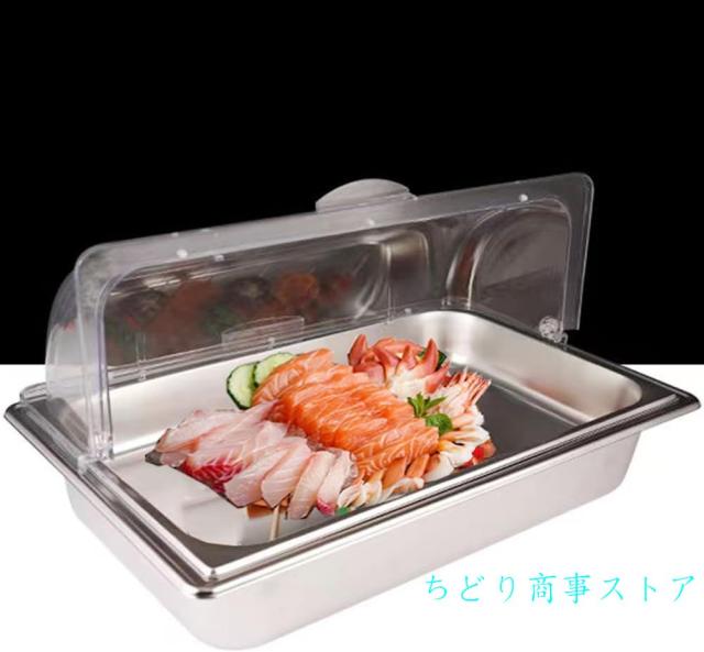フードディスプレイ保冷フードディスプレイセットステンレス製透明PC蓋付きバイキングビュッフェ保存陳列鮮度保持錦刺身/寿司/ケーキ/サラダ業務用家