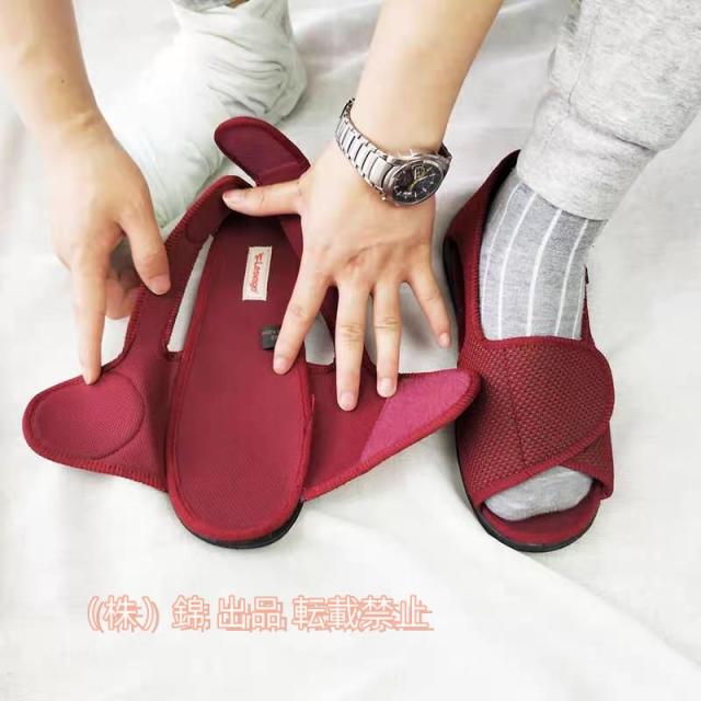 4E相当なゆったりしたデザインは甲高、幅広、外反母趾、やリハビリ用におすすめ、浮腫した足や変形した足でも快適に履ける逸品です。履きやすく、履かせもしやすくて、便利なポイントで好評も頂いております。