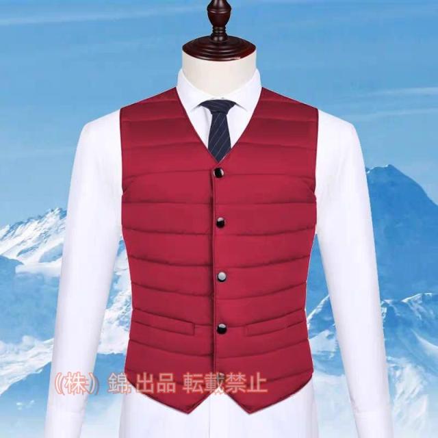 ダウンベスト メンズ インナーベスト インナーダウン スーツベスト 中綿入り 軽量 防寒 Vネック ボタン 高級 株式会社錦ビジネス フォーマル スタンドカラー