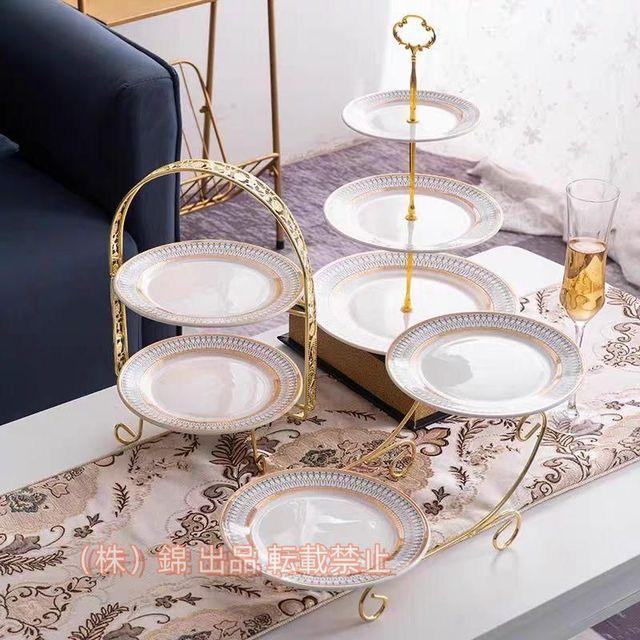 ケーキスタンド 多層 ゴージャスな金枠プレート アフタヌーンティー 皿 株式会社錦 セット 北欧の風 (2段)
