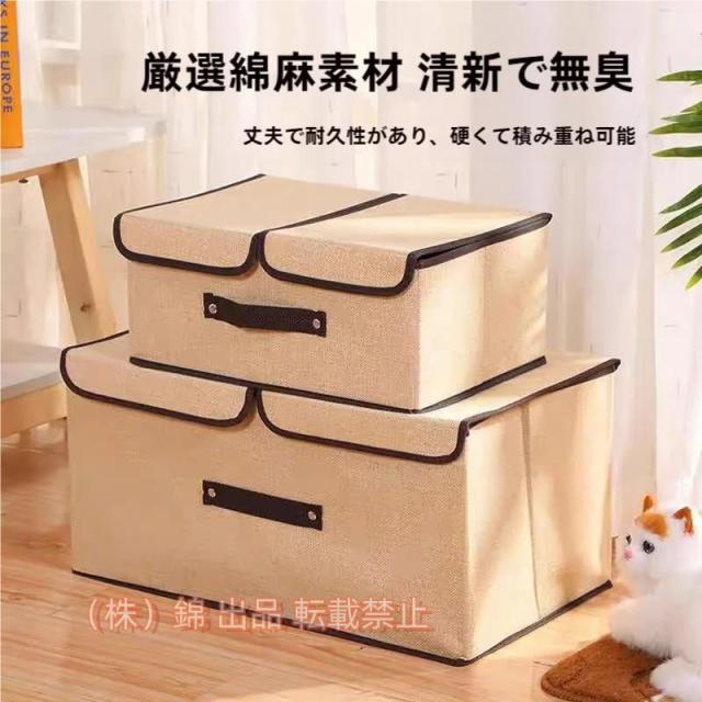 ふた?仕切り付き マルチ収納ケース 折りたたみ可能 リネン 小物 おもちゃ 整理 株式会社錦 衣類収納ボックス (ベージュ 37.5L(2個))