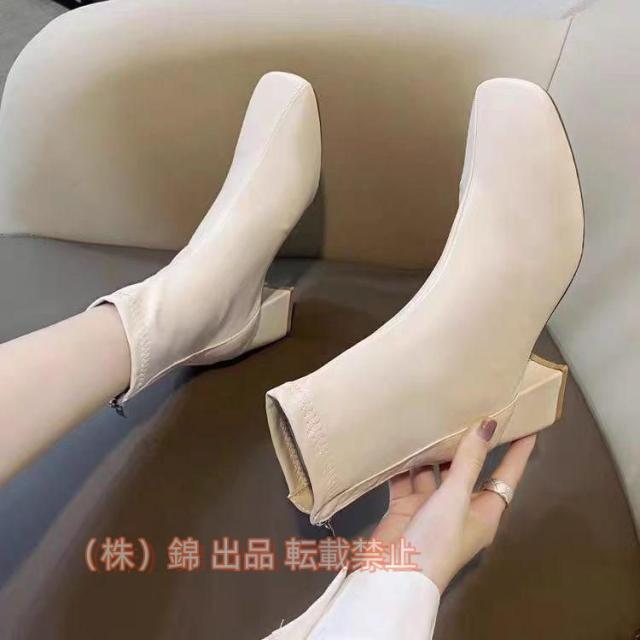 ブーツ 女性用 太ヒール ショートブーツ レディース 秋冬 スクエアトゥ 歩きやすい 痛くない おしゃれ 美脚 株式会社錦 20代30代40代 通勤 通学 可愛い