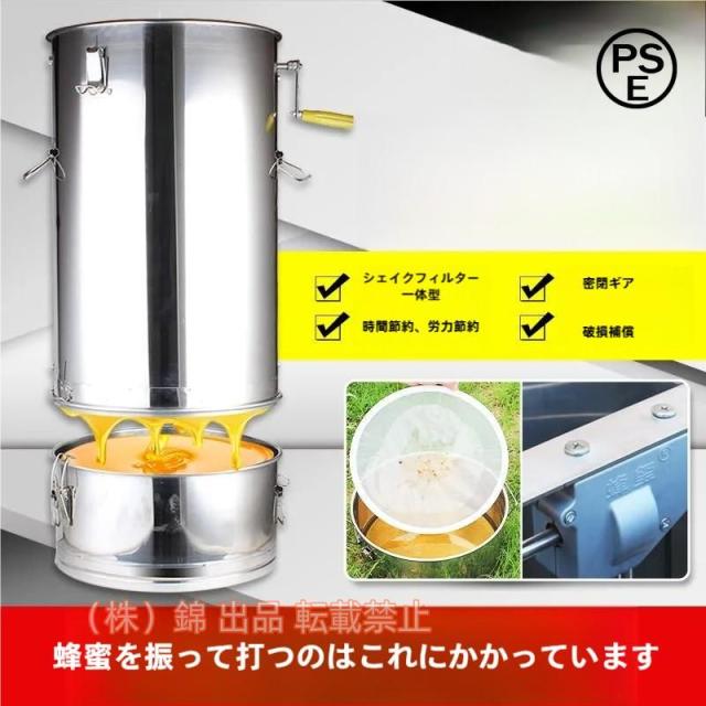 蜂蜜分離器手動式採蜜機濾過ネット付と大容量ステンレス製はちみつ遠心分離機3級濾過プログラム錦分解可能でお手入れが簡単濾過器蜜こし器蜂蜜抽出養