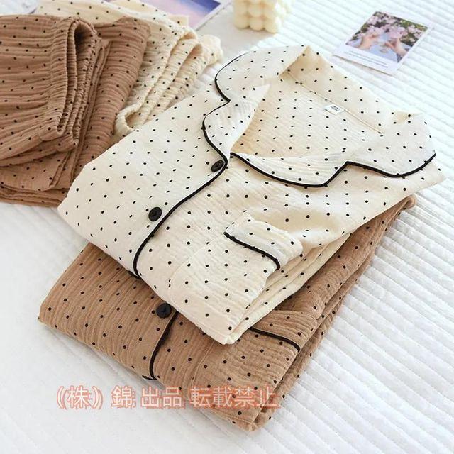 ルームウェアパジャマレディース二重ガーゼ綿前開き長袖長ズボン春夏秋ダブルガーゼガーゼパジャマシニア冷え性対策冷房株式会社錦抗菌可愛いおしゃれ