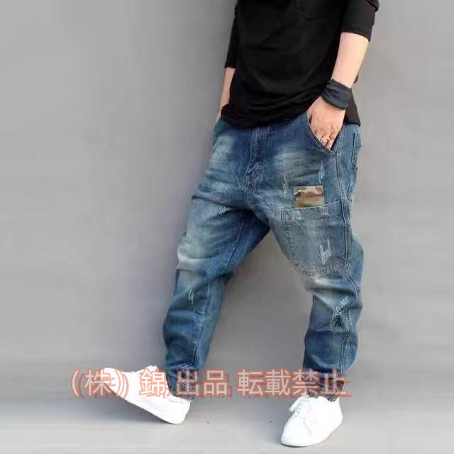 デニムパンツ メンズ ジーンズ ロング丈 ゆったり サルエルパンツ 大きいサイズ ヒップホップ B系株式会社錦 ファッション カジュアル ウォッシュ 新作
