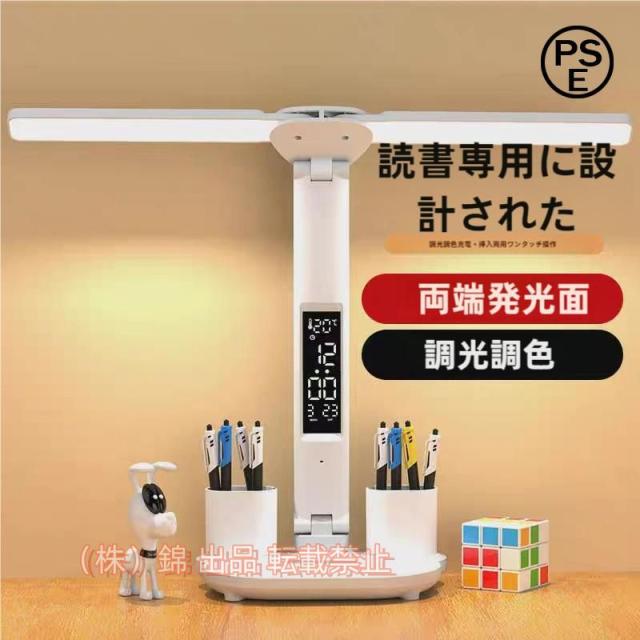 デスクライトled学習机おしゃれコードレス目に優しいダブルランプ電気スタンド錦充電式調光調色学習用作業寝室読書勉強机ペン立て付き折り畳み