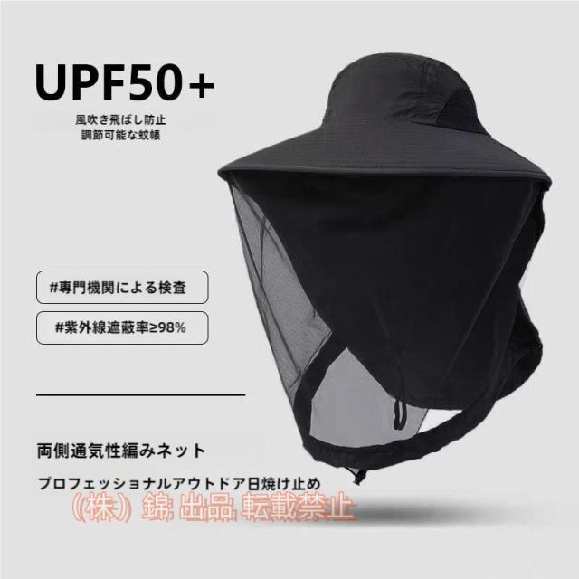 虫除けネット付き 日よけ 帽子 つば広 防虫ネット 株式会社錦 一体型 UV 紫外線対策 園芸 農作業