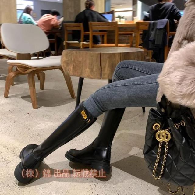ジョッキーブーツ ストレート ロングブーツ キレイめ ローヒール バックジッパー 錦 上品 コーディネート レディース靴 厚底 太ヒール チャンキーヒール 美脚