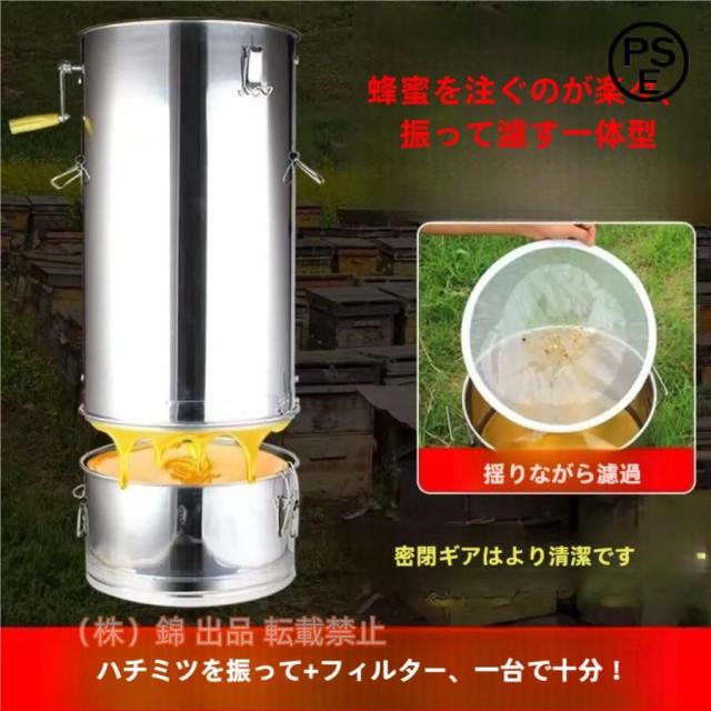 蜂蜜分離器手動式採蜜機濾過ネット付と大容量ステンレス製はちみつ遠心分離機3級濾過プログラム錦分解可能でお手入れが簡単濾過器蜜こし器蜂蜜抽出養