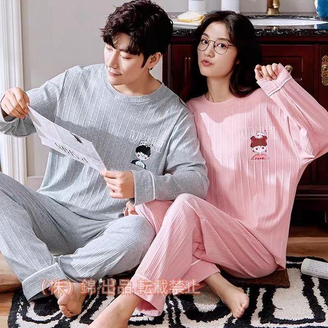 綿100% セットアップ 長袖 ス ロングパンツ コットン カップル パジャマ 株式会社錦 メンズ レディース ルームウェア 部屋着 スウェット 上下セット パジャマ