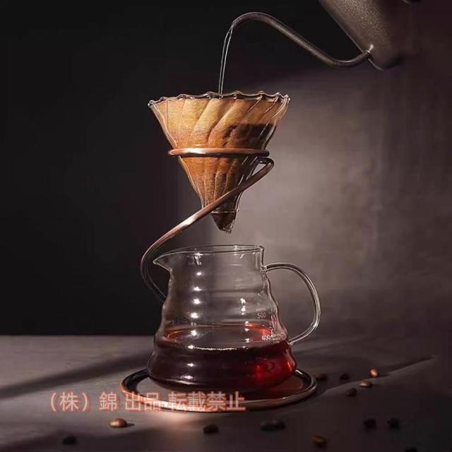 金属材の螺旋構造のコーヒースタンドは、耐力が強くて変形しにくいので、使用簡単、二色ある。