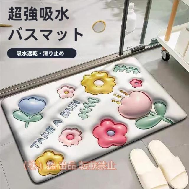 バスマット3d立体花柄お風呂マット珪藻土マット洗面所マット玄関マット裸眼膨張効果滑り止め超吸水速乾性低反発株式会社錦柔くて快適洗えるお手入れ簡単可愛