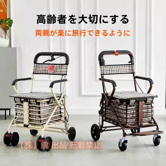 手押し車 シルバーカー 折りたたみ 手押し車 歩行補助 補助具 ブレーキ付き 収納 買い物 ショッピングカート 座れる 高齢者 座面付き 錦 杖代わりカート
