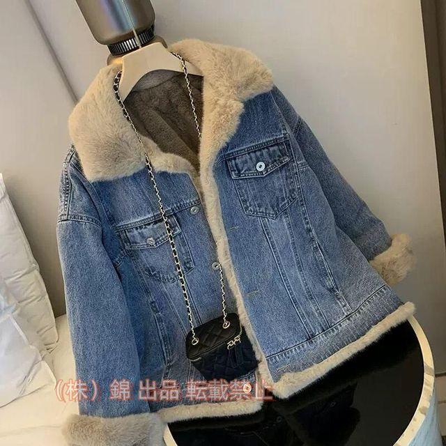 デニムコートデニムジャケットファーコートジージャン裏起毛レディース秋冬アウターボアブルゾン防寒厚手株式会社錦もこもこあったかふわふわ暖かいショー