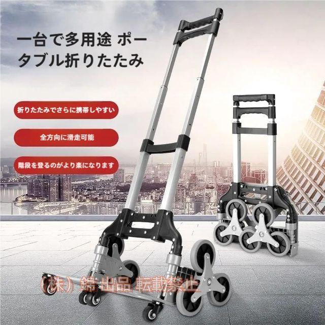 キャリーカートハンドトラック10輪階段三輪折りたたみ軽量段差台車4輪360度回転静音大型タイヤバッグ付け高さ調節固定ロープ付錦荷物運搬業務用