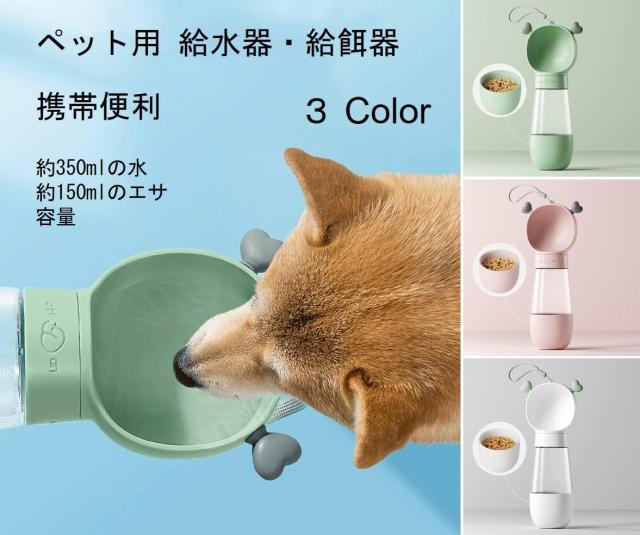ペット給水器給餌器携帯式ペットウォーターボトルペット水飲み水槽付きエサ容器おやつ入れ350mlの水150mlエサ株式会社錦水漏れ防止軽量持ち運び便利散歩旅
