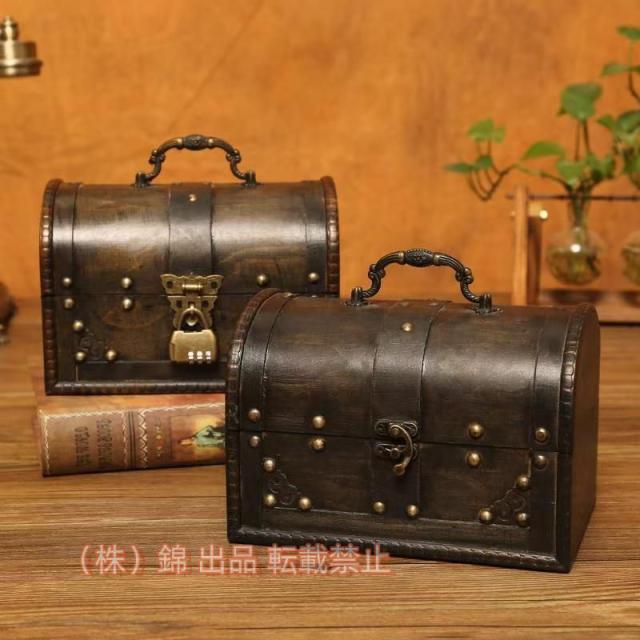 elrinrin 小物入れ 木製 宝箱 収納 アンティーク 小箱 株式会社錦 ふた付き レトロ 財宝 インテリア B ロック