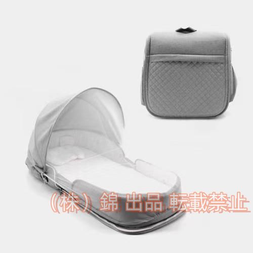 【素材】本体カバー:リネン100% クッションカバー:綿100% クッションパッド:ポリエチレン100% 【付属品】蚊帳、ショルダーストラップ、ベビー枕