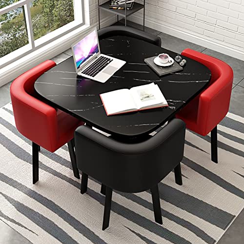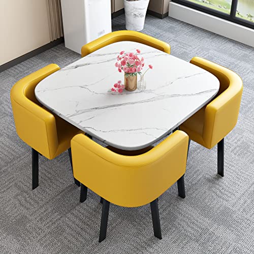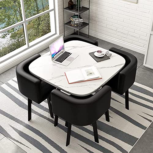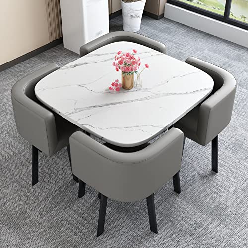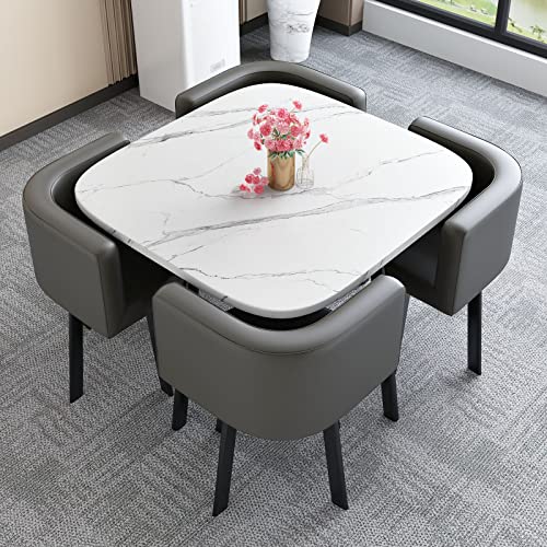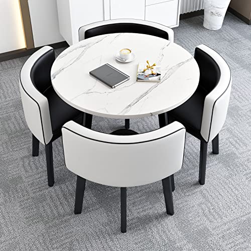 ダイニングテーブルセット丸型大理石のテクスチャ食卓セット錦省スペース丸型4人掛けカフェテーブル丸テーブルダイニングルームとキッチン用 セッバックレスト