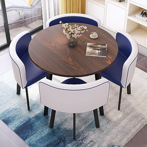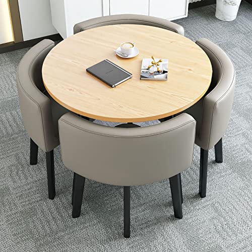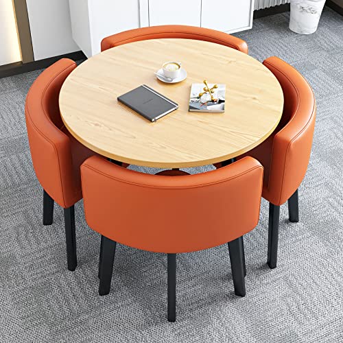 コンパクト5点ダイニングセット:テーブルは直径80cmの2つのサイズがあります。 テーブルはあなたの家の色に簡単に合わせることができます。 椅子はコーヒーチェアまたはダイニングチェアとして使用できます。コットンリネンとオイルワックスレザーの