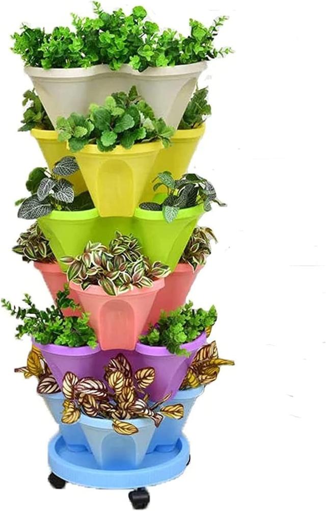 【素材】:丈夫なプラスチック製の植木鉢で、色あせやひび割れに強いです。花、ハーブ、果物、多肉植物、マイクログリーンなどを育てましょう!これらの積み重ね可能なプランターで植物を垂直に成長させることにより、小さなスペースを最大限に活用してください。