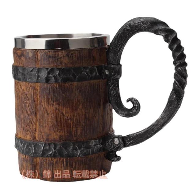 ウッドスタイルビールジョッキビアジョッキビールジョッキ断熱ビールジョッキ模造木目ビール樽カップビール紅茶株式会社錦大容量木製樽型コーヒー牛乳ワイン