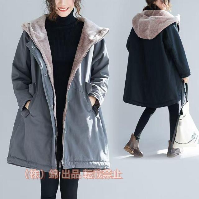 モッズコート レディース 裏ボア フード付き ボアブルゾン 中綿 ロングコート ミリタリー アウター 株式会社錦防寒着 秋冬 大きいサイズ 暖かい 裏起毛 お洒