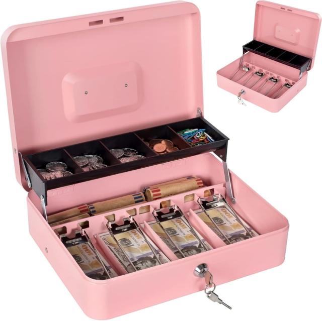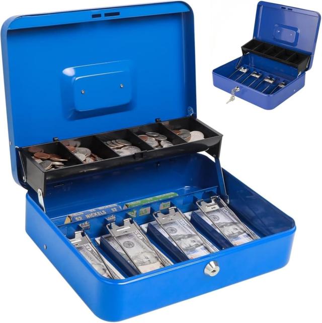 小口現金ボックス: このロックボックスは耐久性のあるスチール製で、しっかりと作られており、落としても簡単に破裂しません。屋内と屋外で使用できます。学校、スーパーマーケット、収納ロッカー、キャビネット、家族、ヤードセールなど。手提げ金庫小型小紙幣、コイン、小切手、領収書の保管に適しています。