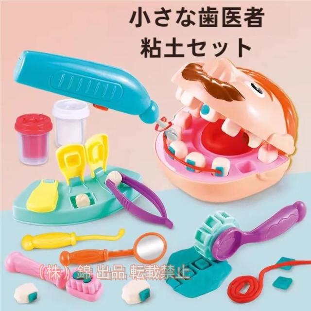 セット内容:4色入りのねんど・ピンセット・歯科用ドリル・探針・歯鏡など歯治療用の道具がセットになっているのため、ねんどをこねるだけでなく、道具を使って歯の診察のまねもできますよ!思い切りお医者さんごっこを楽しめましょう!