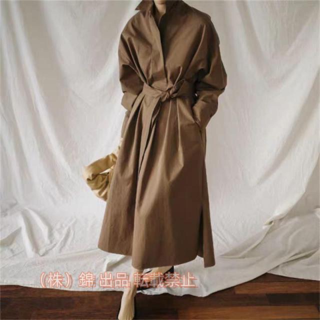 大人かっこいいワンピース 長袖 膝下丈 ミモレ丈 シャツワンピース 2WAY ブラウン 株式会社錦 ほっそり効果大 20代30代40代50代 ミセス