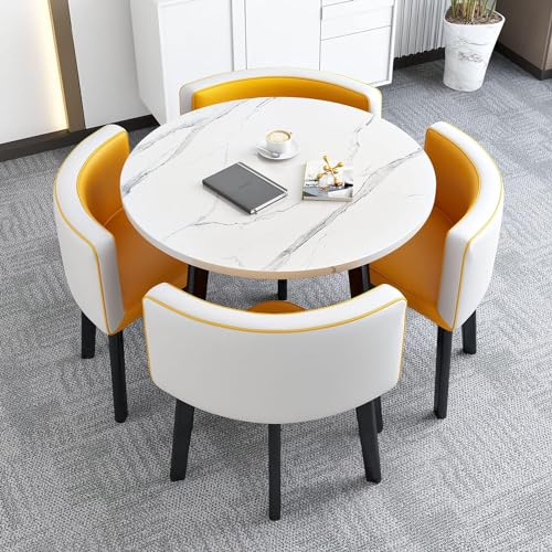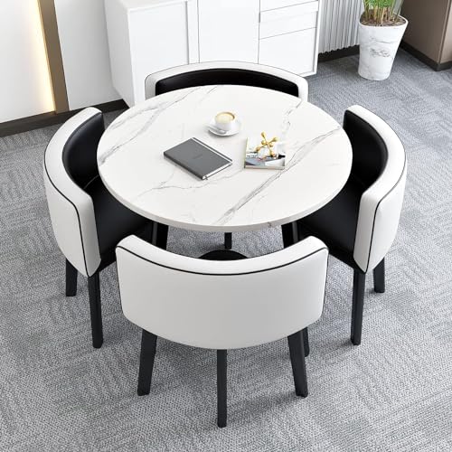ダイニングテーブル セット食卓セット 4人用セット 丸テーブル ダイニングルームとキッチン用 モダンデザインテーブルと椅子セッバックレスト付き 省スペース丸