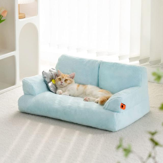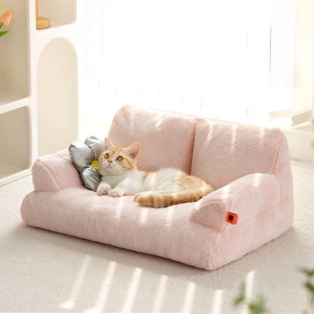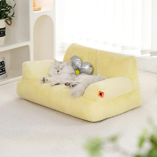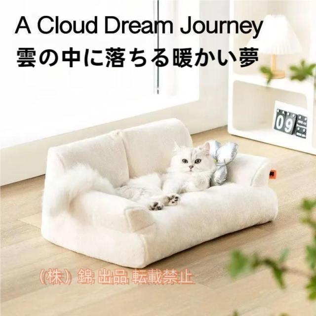 ペットベッド-小花枕付き、猫ソファー洗えるベッドクッションフワフワ四角型夏四季適用クッション小型/中型犬用錦猫用ふわふわ柔らかい通年可愛い