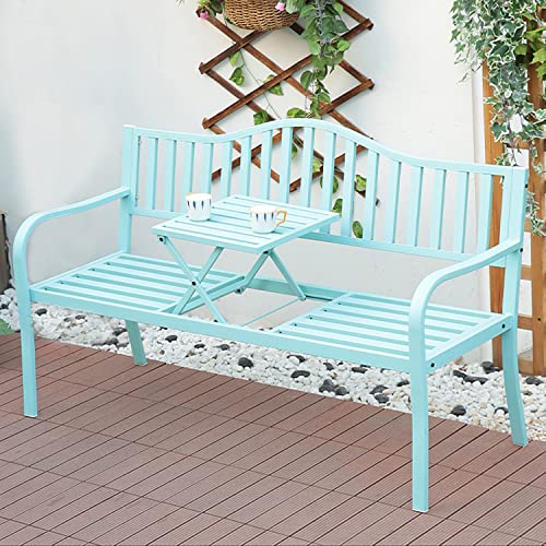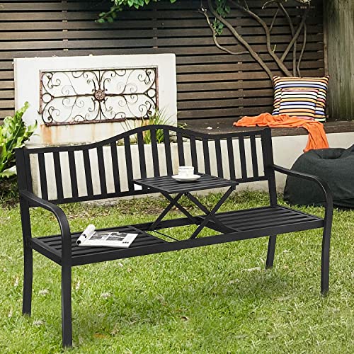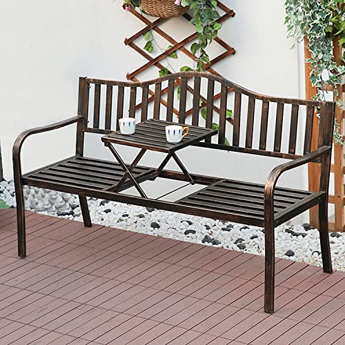 ガーデンベンチ 屋外 ガーデンチェア ベンチ 耐荷重約250kg 鋳鉄製のパークベンチシート 折りたたみ式センターテーブル付き 3人掛 ガーデン ベンチ 中庭や庭園に
