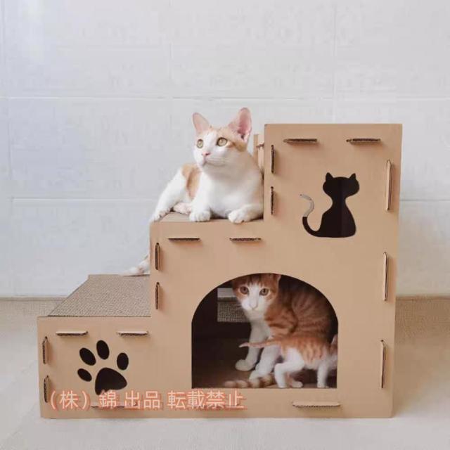 猫ハウス 段ボール 爪研ぎ キャットタワー 階段 猫用爪とぎ 猫ハウス ステップ キャットハウス 猫箱 猫ベッド 株式会社錦 猫爪とぎボックス 二層