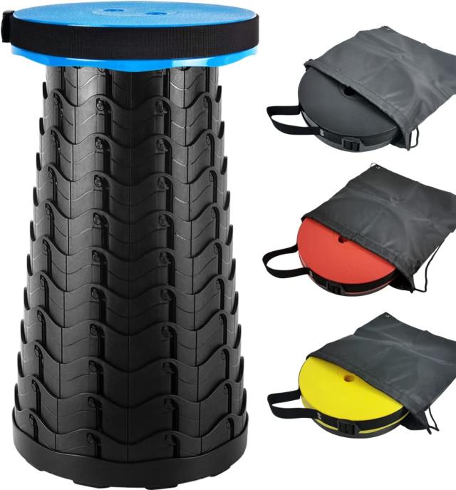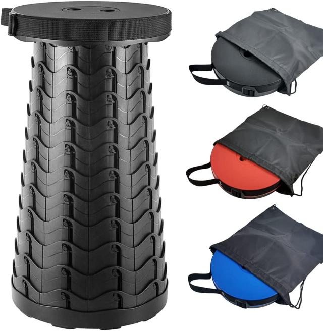 【使い方簡単、持ち運び便利】使い方簡単:少しひねりを入れながら両端を引くだけでスツールが完成。収納は逆方向に少しひねりを入れながら両端を押すだけで収納可能。また、ストラップ付きで、手に持ってでも、肩に掛けても、便利です。リュックにも収納可能です。