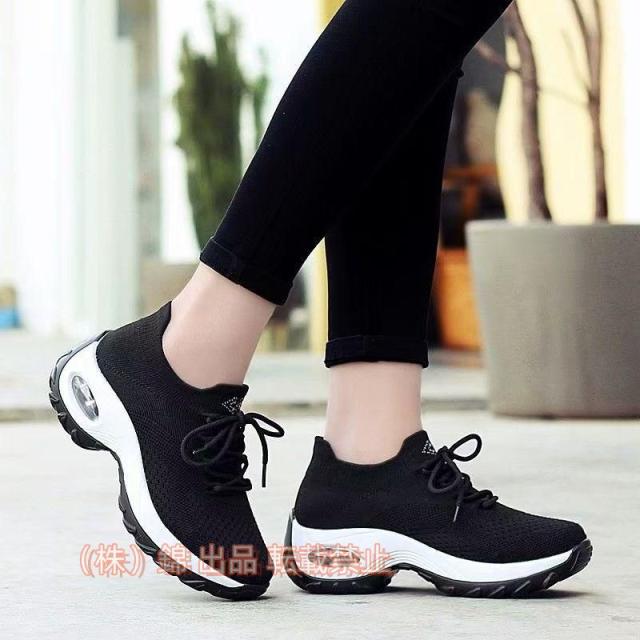 新型厚底エアークッションシューズ、ハイヒール、ストレッチカジュアル婦人靴、新型厚底エアークッションシューズ ウォーキングシューズ 37 白黒