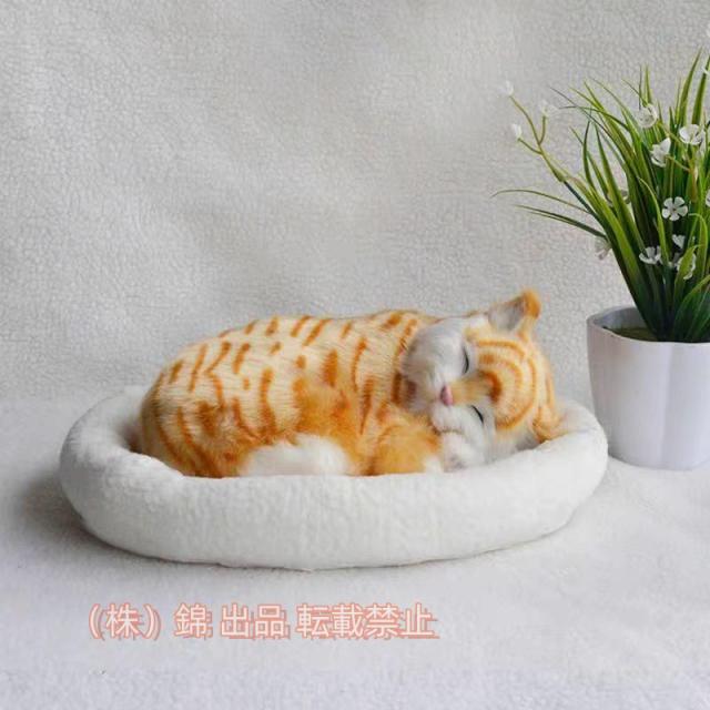 呼吸して眠るリアルな猫のぬいぐるみ ねこ ぬいぐるみ リアル 錦 本物 そっくり ペット すやすや眠る お腹が上下する 動く ペットロス ベッド付き アレ