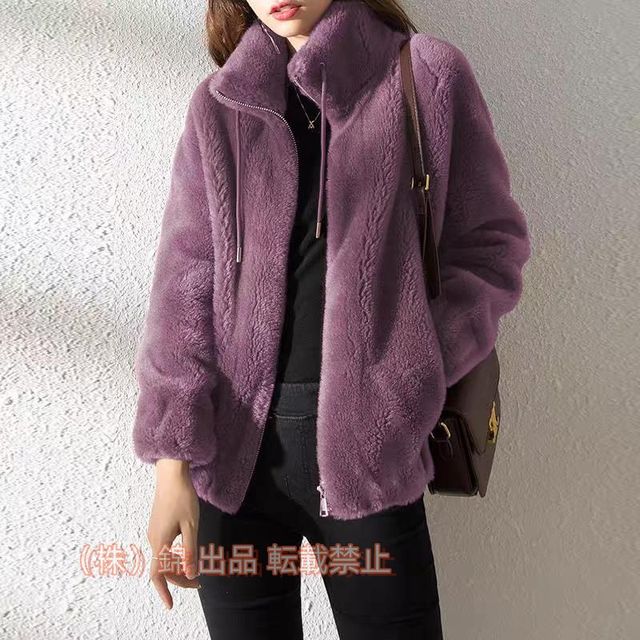 フリースジャケット レディース ボアジャケット ブルゾン ジャケット カーディガン スタンドカラー モコモコ 厚手 株式会社錦無地 秋冬 暖かい 防寒 おしゃれ