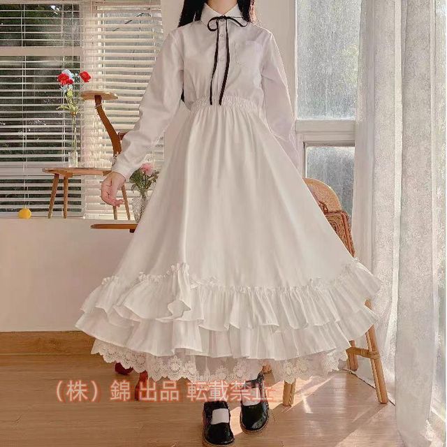 スカート ロリータ風 ロング 2点セット 森ガール フリル 可愛い 株式会社錦 フェミニン ガーリー レース かわいい ふんわり ホワイト ブラック