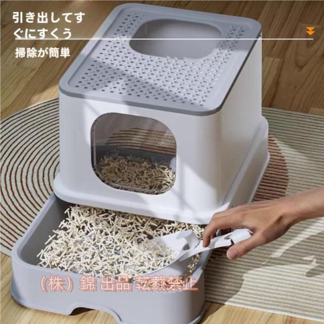 猫トイレカバーにおい対策収納目隠し引き出し式猫トイレ全4色ペットトイレ上から猫トイレ猫用システムトイレ株式会社錦スコップ付強力消臭砂の飛び散り防止