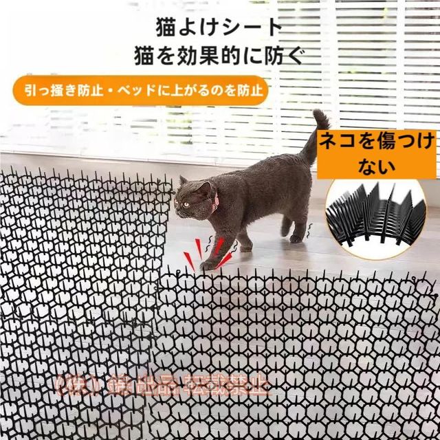 踏む時はビックりしました:猫が「ここダメシート」を置ける場所に侵入した時は、トゲで刺されます。 この場所でビックリされた後、次回同じ場所に侵入しません。