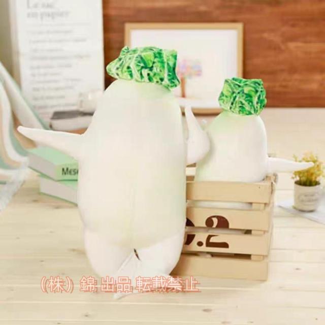 ? <デザイン >:面白い大根君のデザインはお部屋やお店の飾りとしても、抱き枕としても、いろいろな場面でご利用いただけます。愛らしいフォルムで 柔らかく、手触りも良いので抱きしめたくなります!