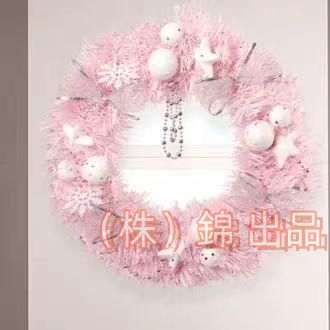 クリスマスリース、クリスマスドアリース内壁の装飾クリスマスの飾りピンクのクリスマスリースライト付き 60cm