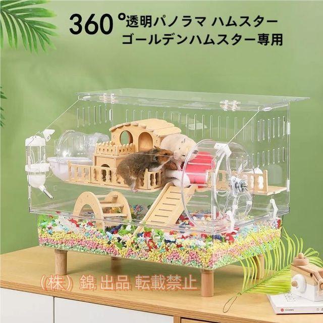 ハムスターケージ透明アクリル製ハムスターケージ2階建てハムスターハウス飼育ケージ小動物ケージハムスターケージ広い空間持ち運び錦組立簡単給水