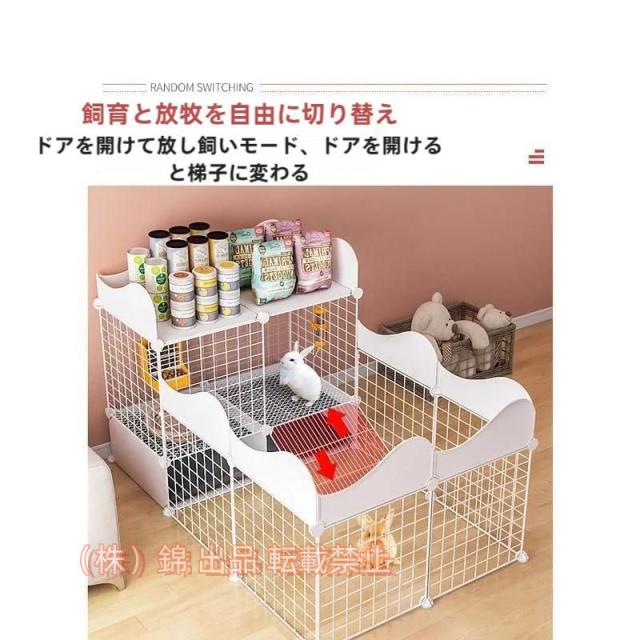 ウサギの檻ウサギ小屋ラビットサークルペットフェンスドア付透明犬猫うさぎバリアゲート小動物フェンス小犬ケージ株式会社錦うさぎのスッキリおそうじケージ組立
